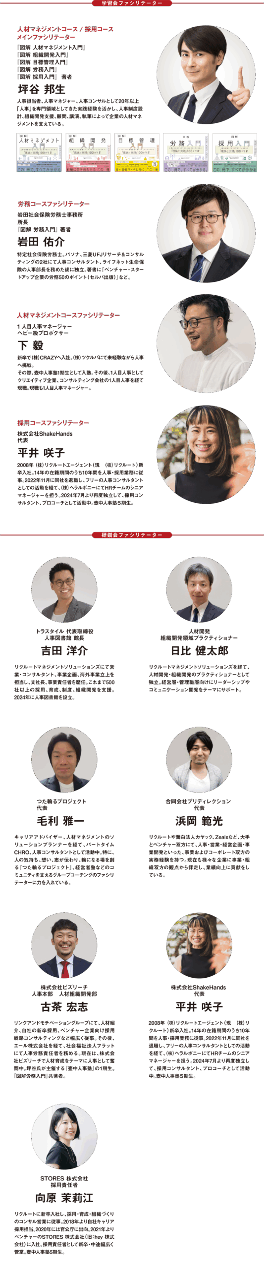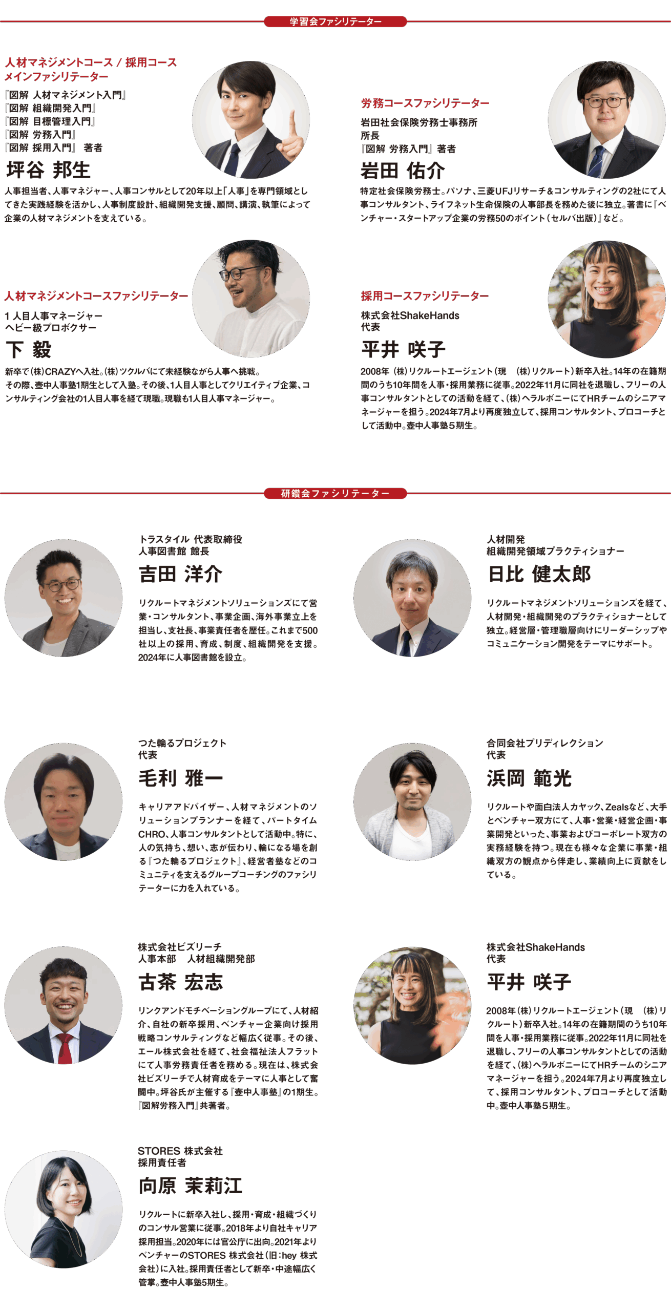 ただし、学びを得るだけで実践の場がない方(経営者、人事以外の方)のご参加はお断りさせていただいております。